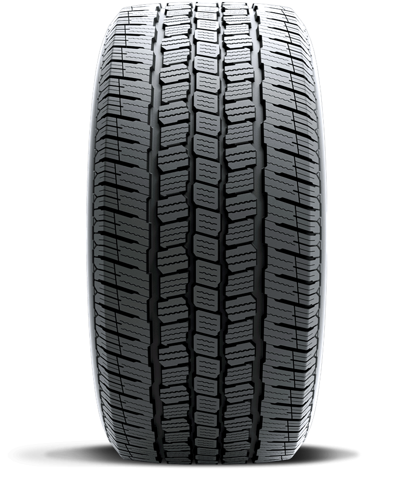 High sipe density on the tread, complemented by lateral grooves, enhances road contact to improve wet traction and hydroplaning resistance.